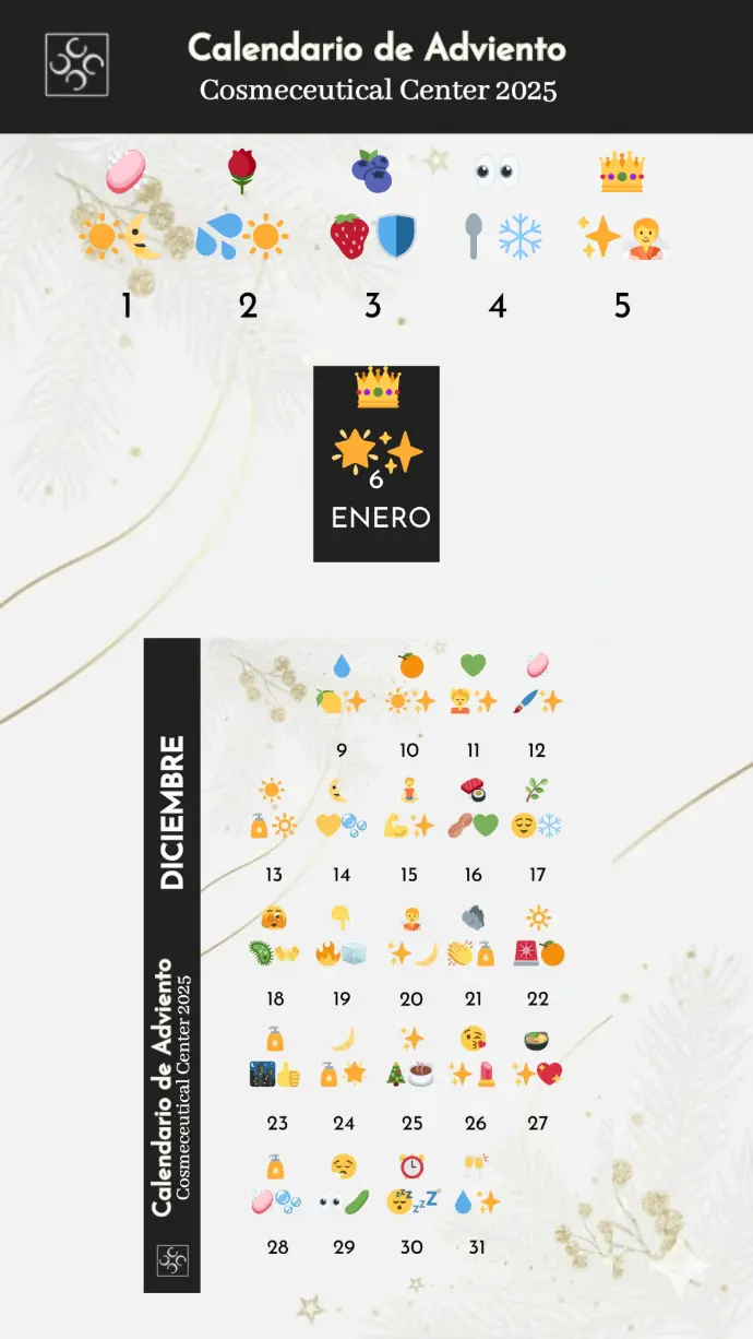 En Cosmeceutical Center celebramos la temporada con un Calendario de Adviento muy especial, pensado para acompañarte día a día con los mejores tips y consejos de cuidado de la piel. Durante este periodo festivo, compartiremos recomendaciones profesionales, rutinas efectivas y secretos dermocosméticos para que tu piel luzca saludable, radiante y protegida.